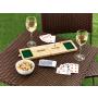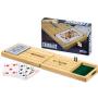 1 kortlek, 1 hopvikbar poängtavla i trä (39 x 11 x 2 cm), 6 poängräknare.