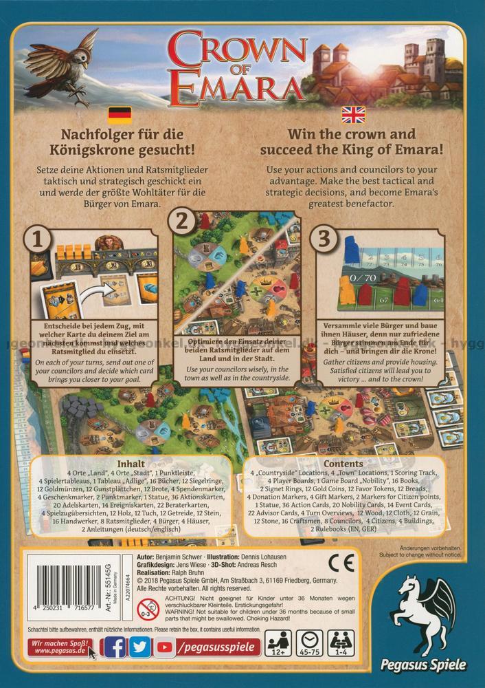 Vinn genom att använda dina handlingar/kort och spelets rådmän (pjäser) till din fördel. Ta de bästa taktiska och strategiska besluten och bli Emaras tronföljare.