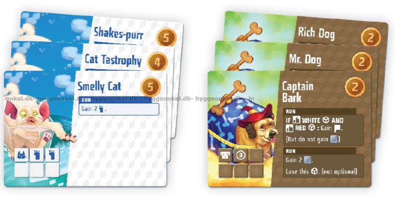 Varje spelare har en deltagare med i racet och ett supportteam, som representeras av de tärningar som man kastar.