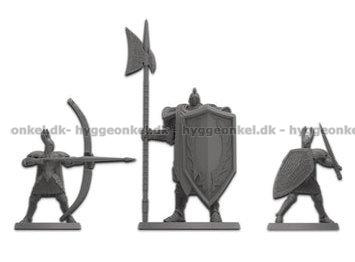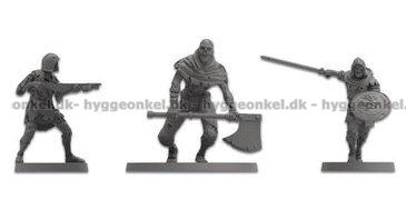 27 miniatyrfigurer, 9 dubbelsidiga kartbrickor, tärningar, kort, kuber och marker.