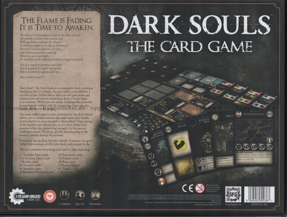 Dark Souls: The Card Game är ett kortspel som bygger på samarbete mellan 1-4 spelare i vilket spelarnas "decks" utvecklas under spelets gång. Spelarna ska utforska olika "Encounters", besegra fiender och samla på sig skatter.