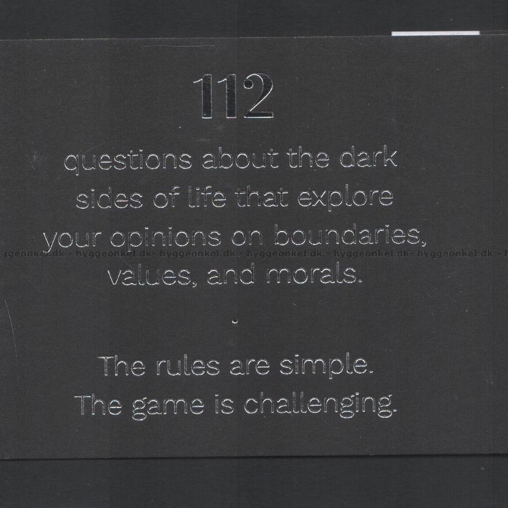 Asken innehåller 112 kort med frågor. Vänligen notera att frågorna är på engelska.