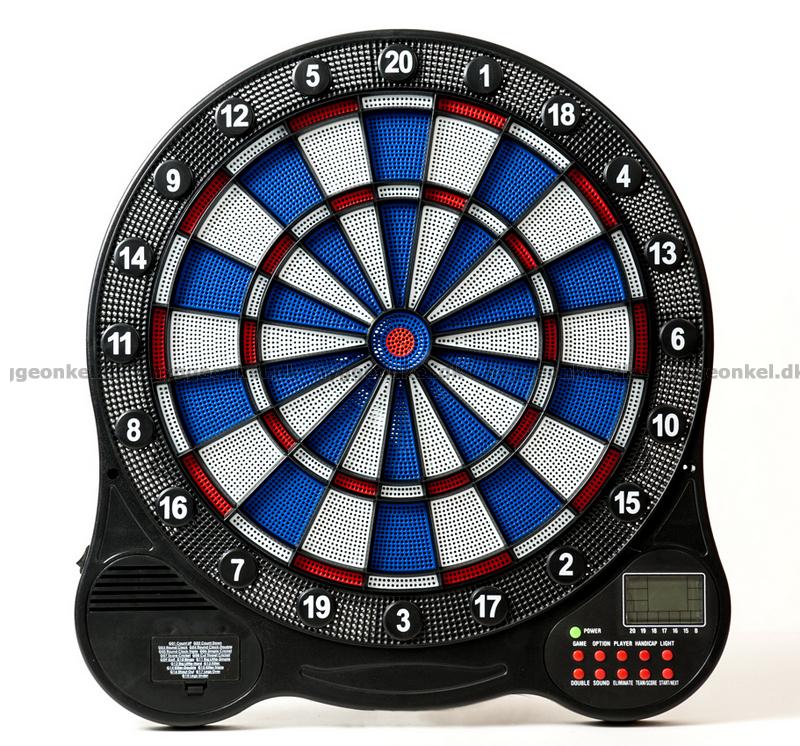 Här får du ett elektroniskt dartspel och två set med pilar.