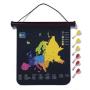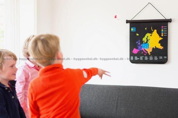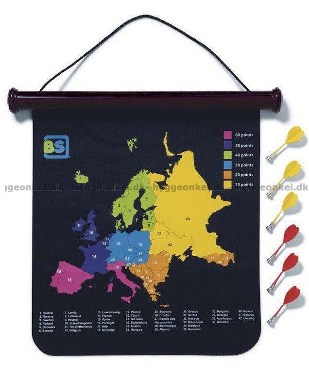 På den andra sidan finns en karta med länderna i Europa. Nederst står vad de olika länderna heter (på engelska). Länderna har olika färger - poängen för färgerna finns markerade överst på tavlan.