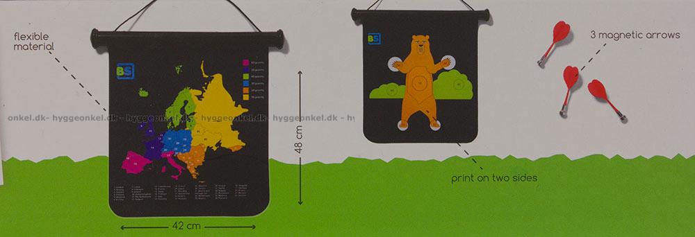 1 dubbelsidig darttavla. Tavlan mäter 42 x 48 cm.