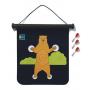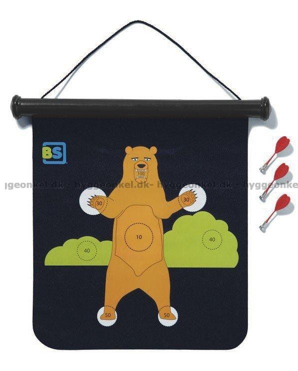 Tavlan är dubbelsidig. På den ena sidan finns en björn med olika poängtal. Vem kan få ihop flest poäng?