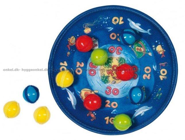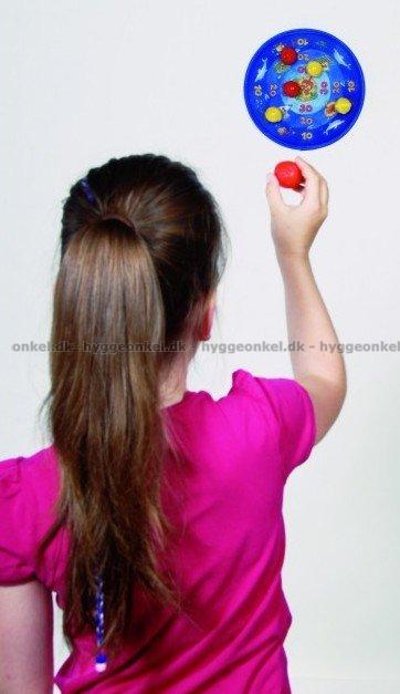 Häng upp tavlan på väggen och försök träffa med bollarna.