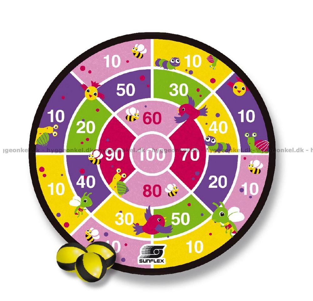 Häng upp tavlan på väggen och försök träffa med bollarna.