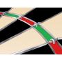 Själva ringen är fastsatt med clips förutom vid bullseye. Tavlan är "självläkande", vilket betyder att man inte kan se märkena efter pilarna när man drar ut dem.