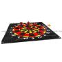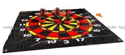 Här är ett stort dartspel med pilar som inte gör någon skada om de skulle hamna utanför tavlan.