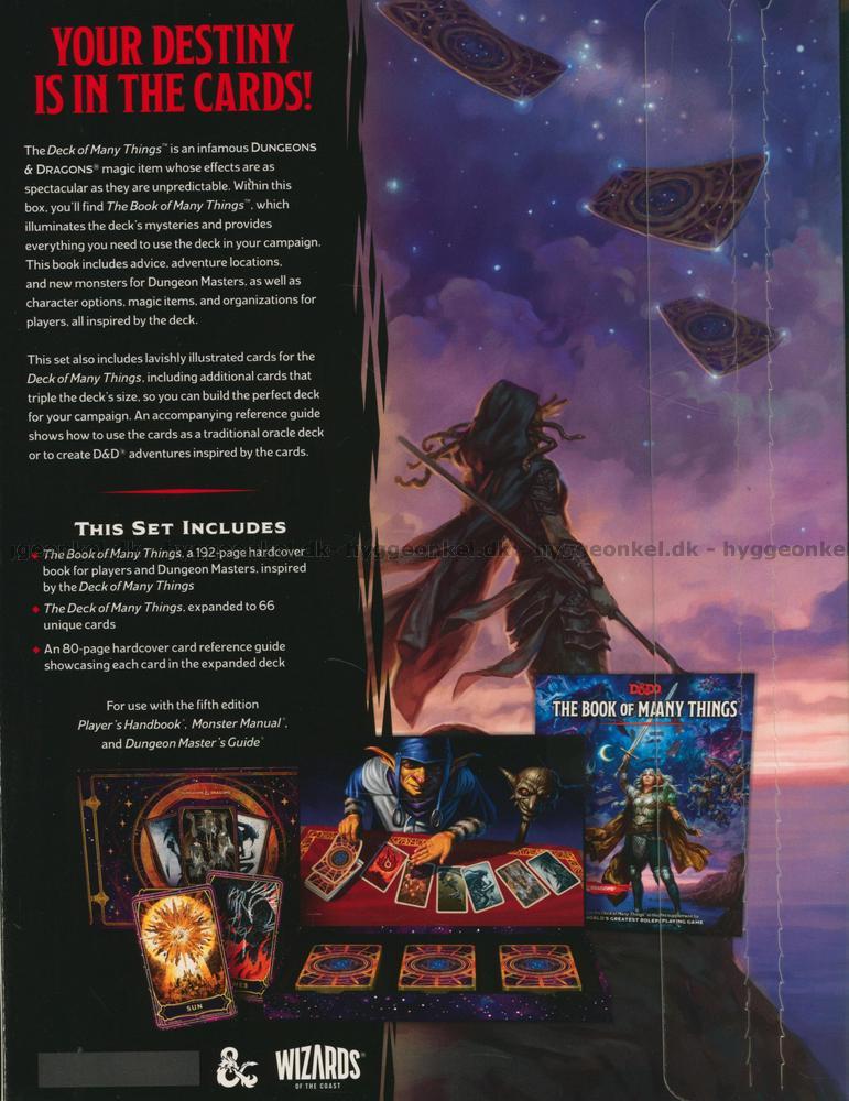 Detta set inkluderar vackert illustrerade kort till Deck of Many Things. Setet innehåller utöver de 22 korten från originalet Deck of Many Things också 44 nya kort – det vill säga att kortantalet totalt sett tredubblas.