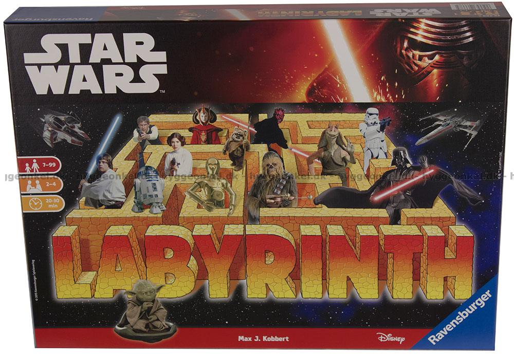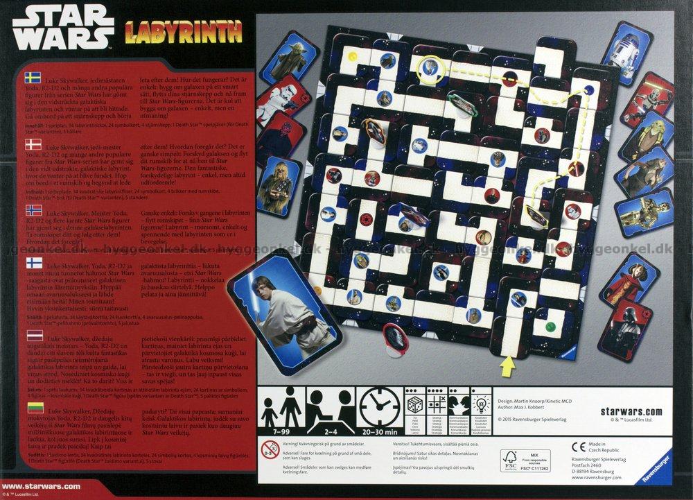 1 spelbräde, 34 fyrkantiga labyrintbitar, 24 symbolkort, 4 pjäser med rymdskepp, 1 pjäs för Dödsstjärnan (används i en unik spelvariant), 5 hållare.