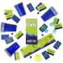 Plastbägare, kort, bordtennisbollar, tennisboll och tärningar.