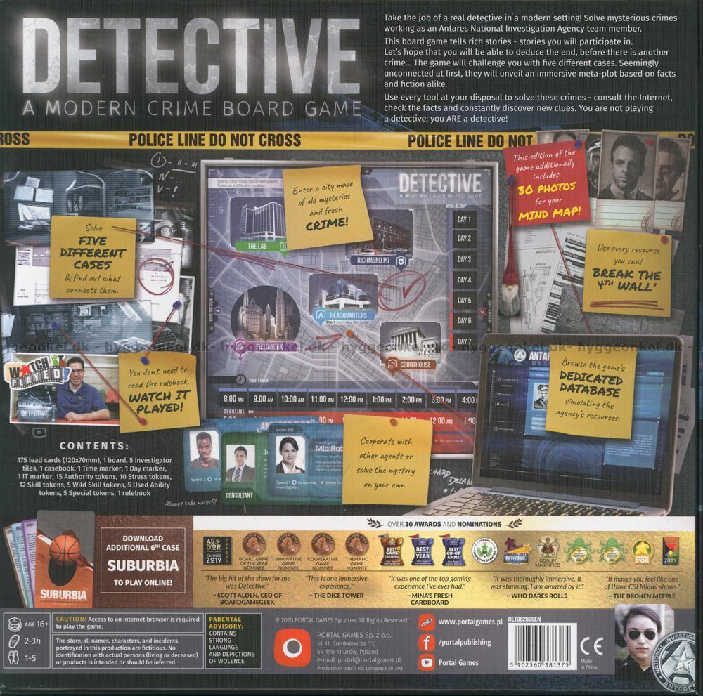 Detective: A Modern Crime Board Game är på engelska med spelregler på engelska.