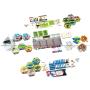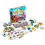 Spelbräde, kort, tärningar, brickor i trä och marker i kartong.