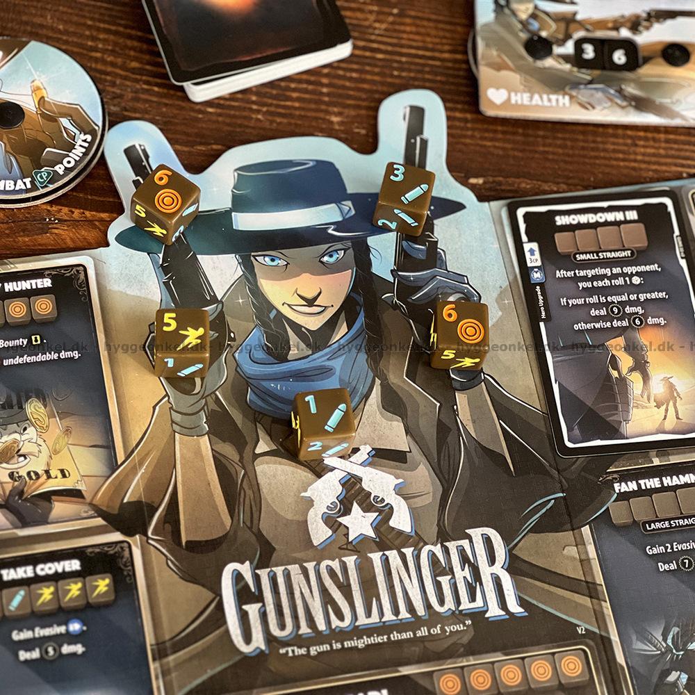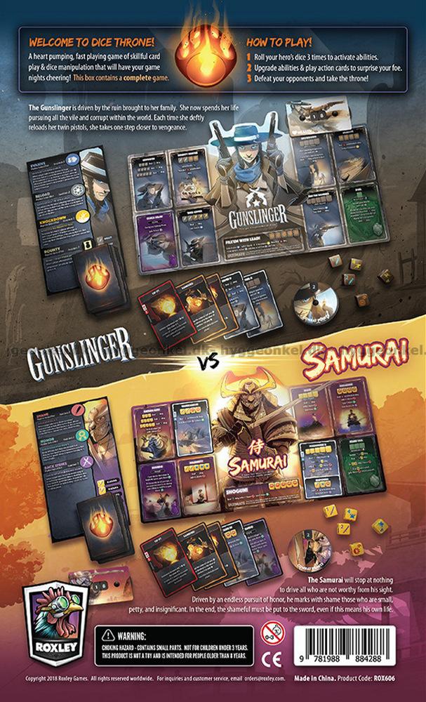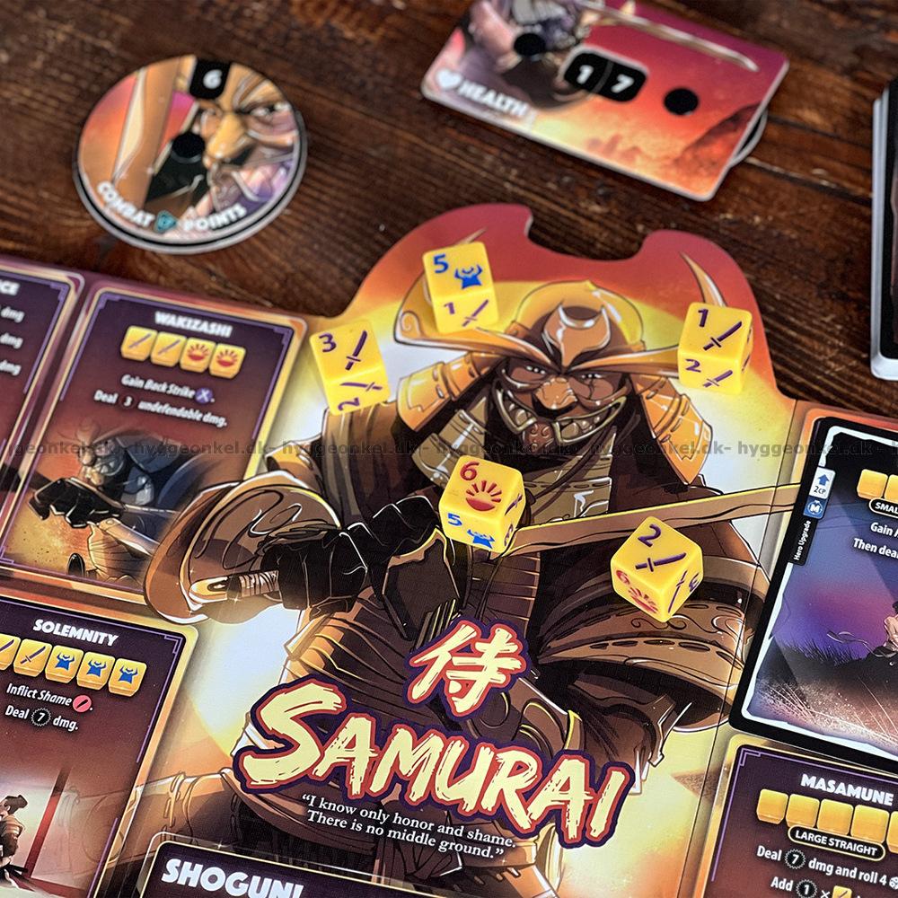 Dice Throne: Gunslinger vs Samurai sätter scenen för en dynamisk duell där hämndens kraft möter ära och disciplin i en visuellt och taktiskt spännande uppgörelse. Gunslingern attackerar med blixtsnabba pistolskott, hårdslående belöningar och stärkande omladdningar, medan Samurajens lugna fokus gör honom kapabel att tillfoga Skam och vända situationen med precisa, ärasdrivna slag.