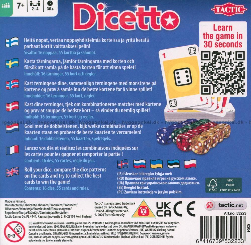 Kasta dina 4 tärningar och försök att skapa en kombination som passar med de kort som ligger på bordet.