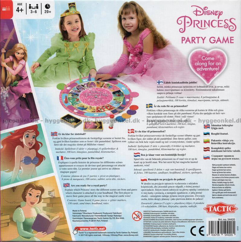 A: En spelare drar ett kort med en bild av en av berättelserna om Disney-prinsessorna. Denna spelare ska försöka att berätta om äventyret och motivet, så att de andra spelarna kan gissa vilket äventyr det handlar om. Man får naturligtvis inte avslöja namnet på vare sig äventyret eller prinsessans namn.