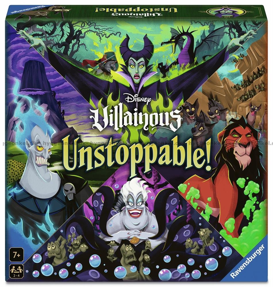 Disney Villainous: Unstoppable! är ett fristående brädspel från Ravensburger där du och dina medspelare tar rollen som ikoniska Disney-skurkar som Maleficent, Ursula, Hades och Scar. Målet är att genomföra din egen onda plan innan de andra spelarna hinner fullfölja sina.