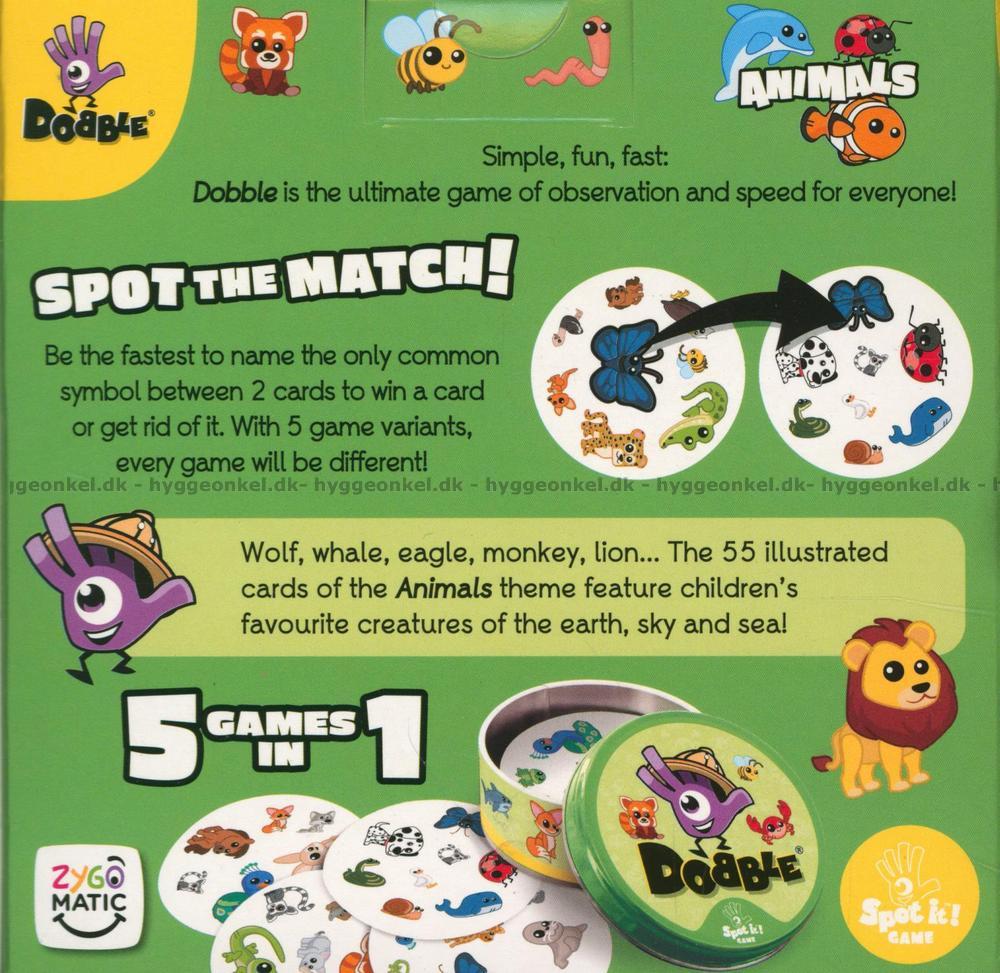 I regelhäftet finns regler för fem olika trevliga spel. I alla spel gäller det att hitta ett par av symboler på två kort.