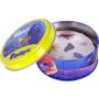 Spelet ligger i en fin, rund metallbox.