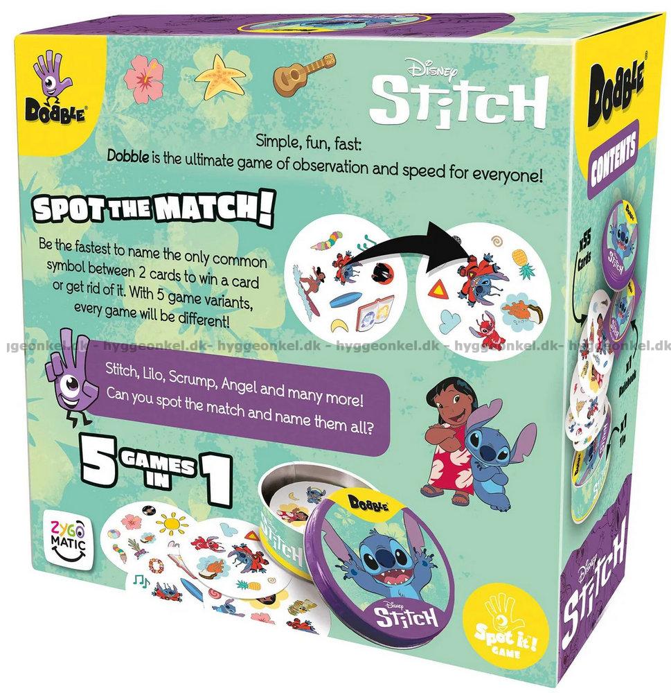 Dobble: Disney – Stitch är den perfekta kombinationen av det älskade reaktionsspelet Dobble och den varma, humoristiska stämningen från Disney-klassikern Lilo & Stitch. Spelet bygger på samma geniala mekanik som gör Dobble så populärt: Varje kort delar exakt en symbol med alla andra kort i spelet, och din uppgift är att hitta matchen snabbare än dina motspelare. Det skapar ett fartfyllt och beroendeframkallande spel där både barn och vuxna rycks med från första sekund.