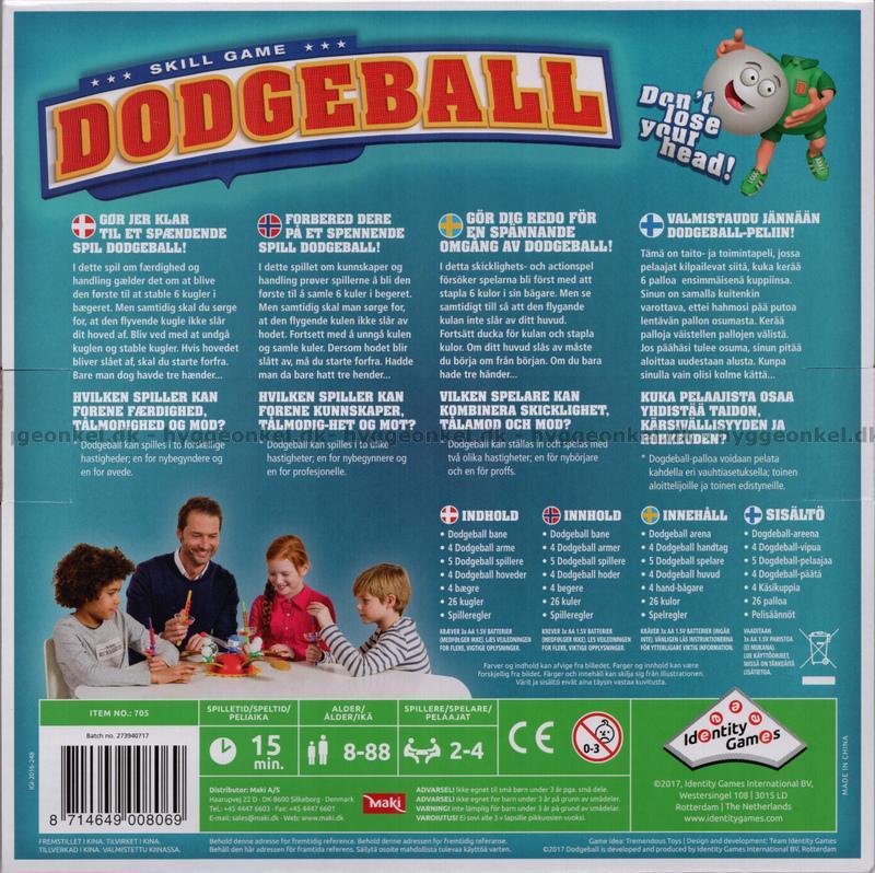 1 Dodgeball-figur, 4 bägare och 26 kulor.