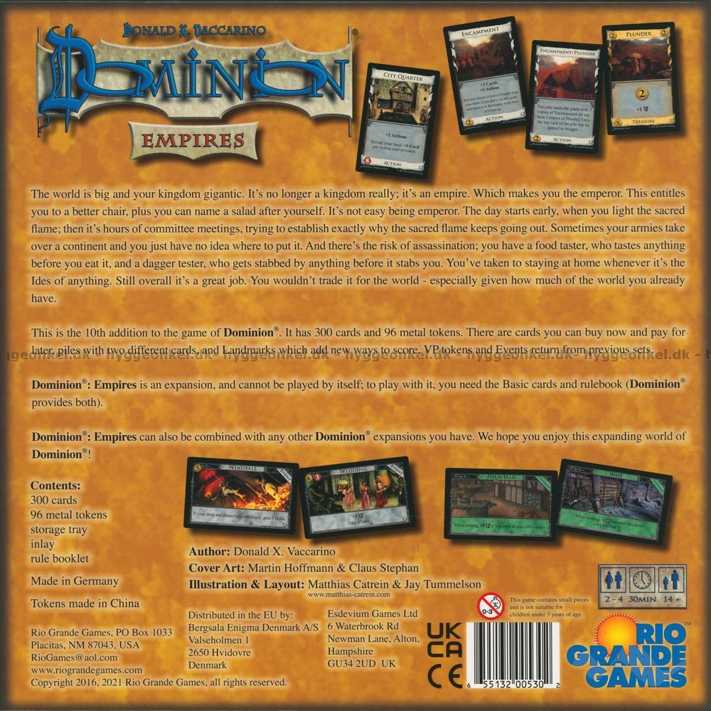 Empires är en expansion till det populära spelet Dominion. Kan inte spelas fristående!
