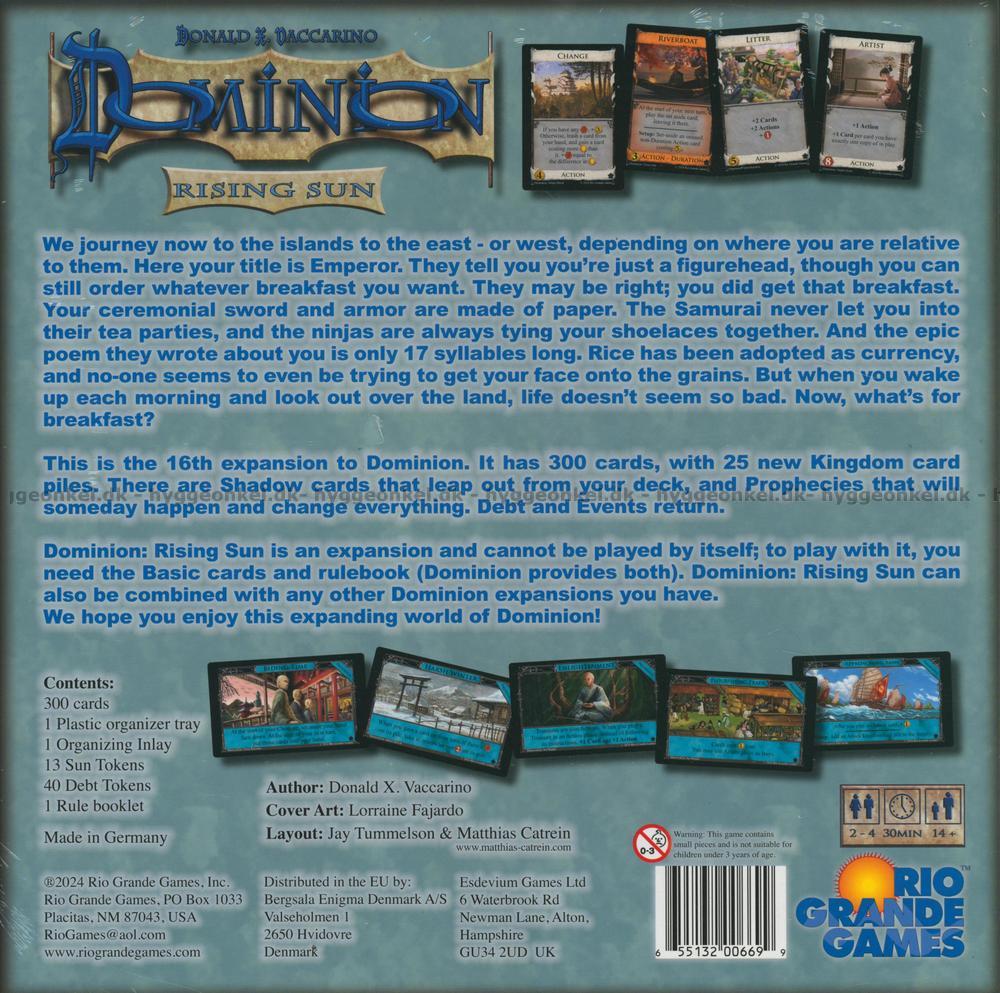 I asken för Dominion: Rising Sun finner du 300 nya kort och spelregler på engelska.
