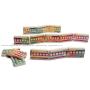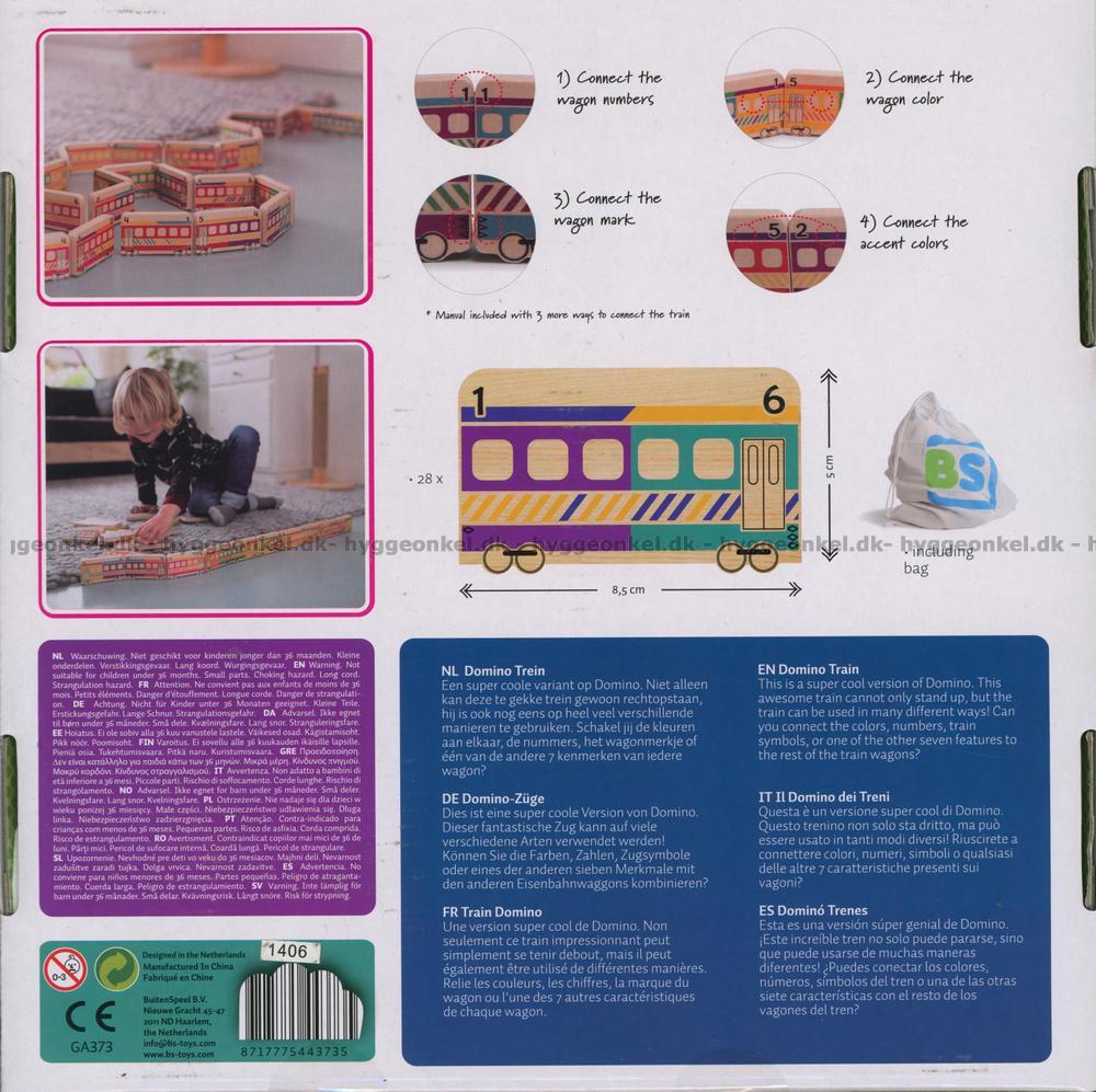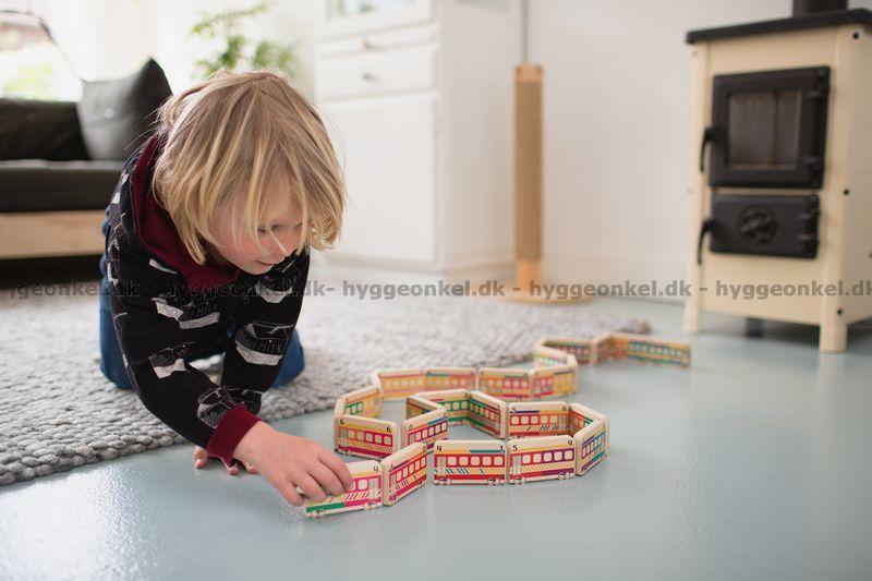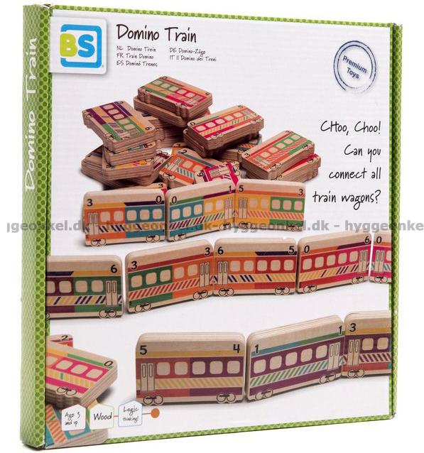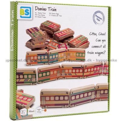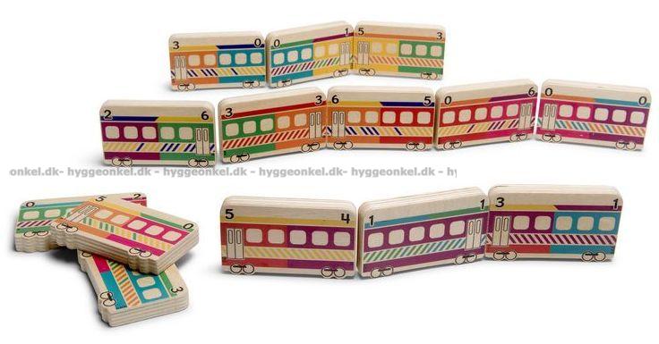 Här är en fin version av domino, i vilket brickorna är illustrerade med tågvagnar. Detta ger möjlighet till ett antal andra tidsfördriv förutom domino.