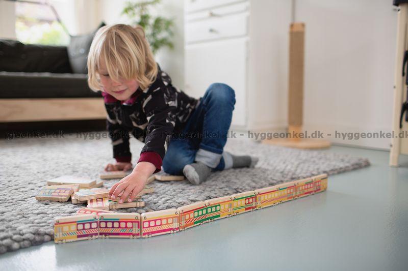 Brickorna med tåg kan stå på högkant och kopplas samman på olika sätt till exempel utifrån identiska nummer eller matchande färger.