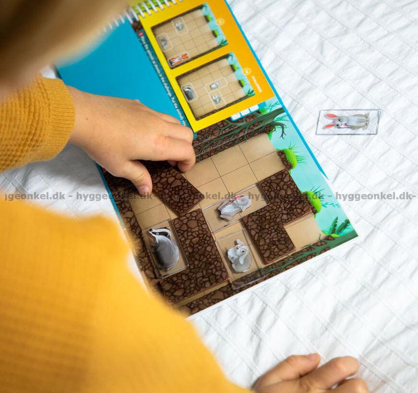 Ett häfte med 48 utmaningar. Uppgifterna ska lösas på den ena sidan i häftet med hjälp av magnetiska brickor.