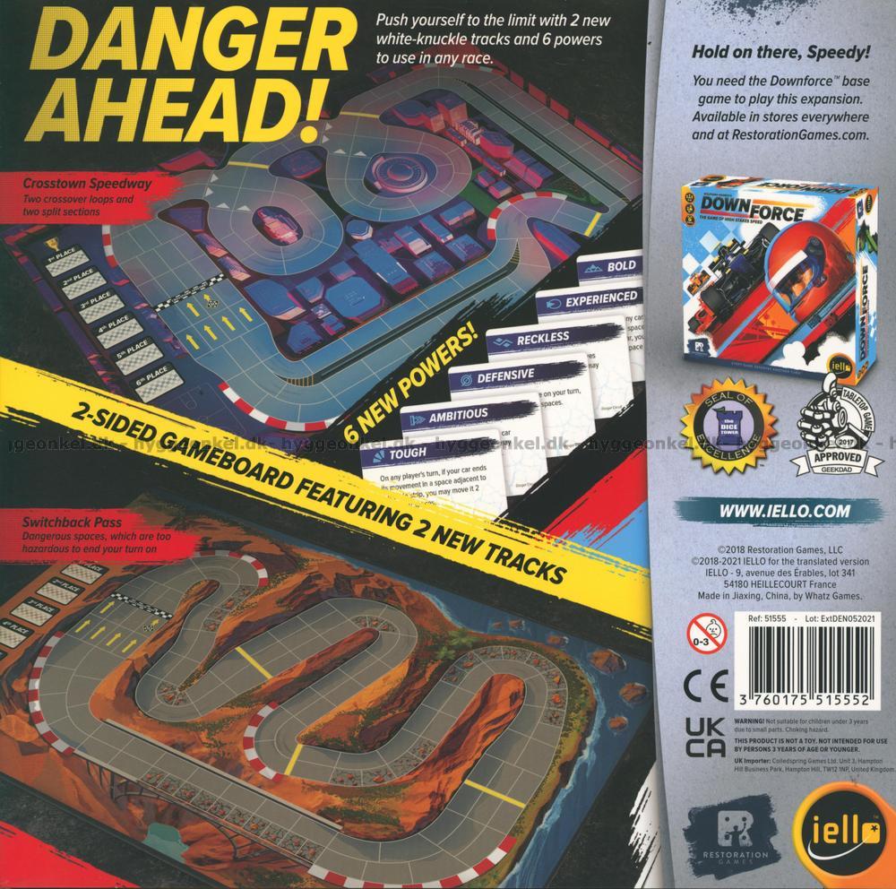 Denna expansion till Downforce innehåller 2 nya banor och 6 nya "powers" att använda i spelet.