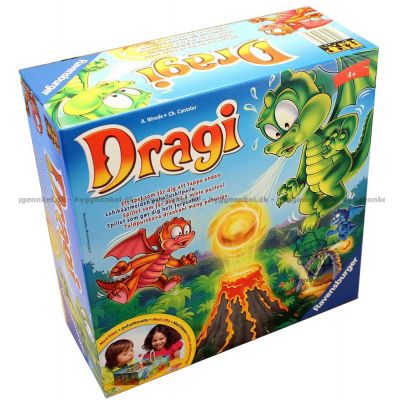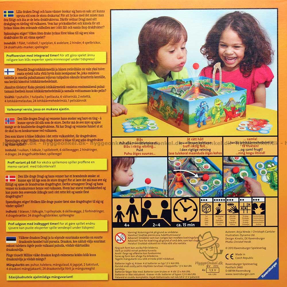 Innehåll: 1 fläkt - 1 eldboll - 1 spelplan - 6 avdelare - 2 hinder - 4 spelbrickor - 24 drakfrukts-marker.