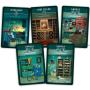 1 spelbräde, 4 individuella spelplattor, kort, brickor och en poängtavla.