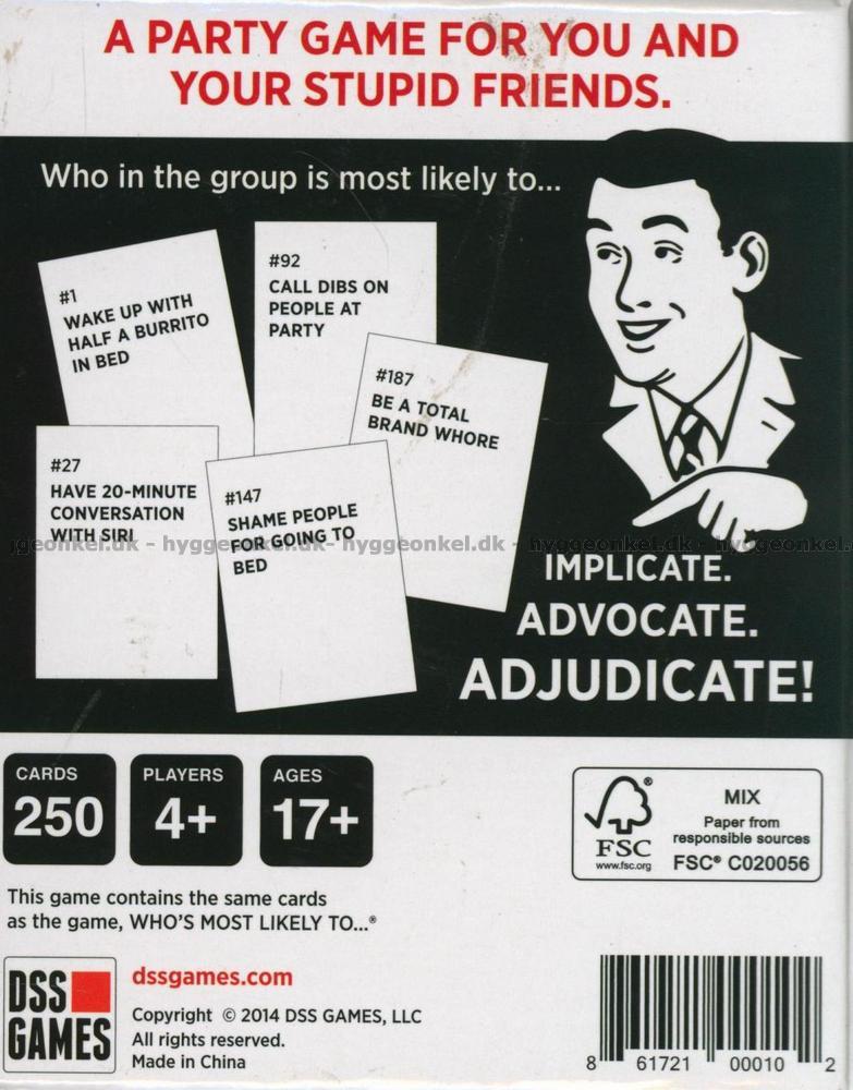 Notera att Drunk Stoned or Stupid är på engelska. Det finns en hel del text på korten.