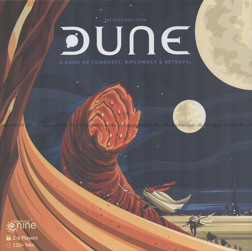 I DUNE är varje spelare ledare för en av de sex stora fraktionerna. Varje fraktion har som mål att ta kontroll över den värdefulla krydda, melange, som endast finns på denna planet. Utan melange är rymdresor omöjliga. Endast genom att inta den beroendeframkallande substansen kan navigatörerna i rymdskeppen förutse framtiden och därmed navigera säkert genom rymden.