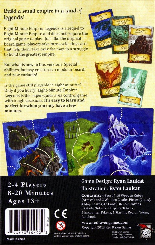 Eight Minute Empire: Legends är en fristående version av Eight Minute Empire. Man behöver alltså inte originalspelet för att spela denna utgåva.