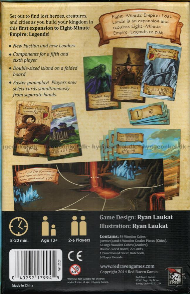Wanderers from afar bring tales of the strange and powerful in distant lands. Set out to find lost heroes, creatures, and cities as you build your kingdom in this first expansion to Eight-Minute Empire: Legends! Eight-Minute Empire: Lost Lands adds even more variety and depth to the game, including: