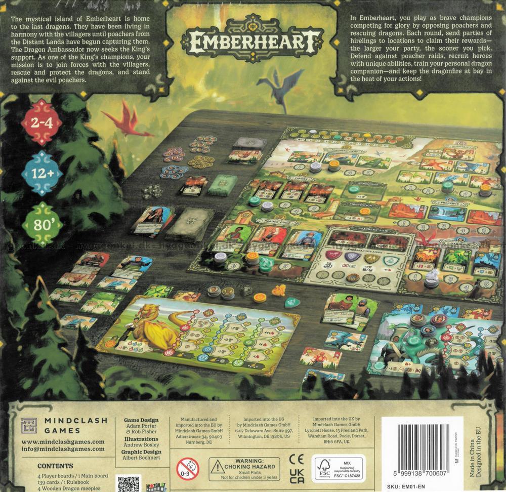 Emberheart är ett stämningsfullt och taktiskt brädspel som utspelar sig på en mystisk ö, där drakar genom tiderna har varit rikets stolta allierade. Konflikten uppstår när brutala tjuvskyttar från främmande länder lägger beslag på öns avlägsna kuster och inleder sin hänsynslösa jakt på drakarna. Som en av kungens utvalda hjältar får du i uppdrag att motverka deras planer, rädda fångade drakar och återställa lugnet på Emberheart.
