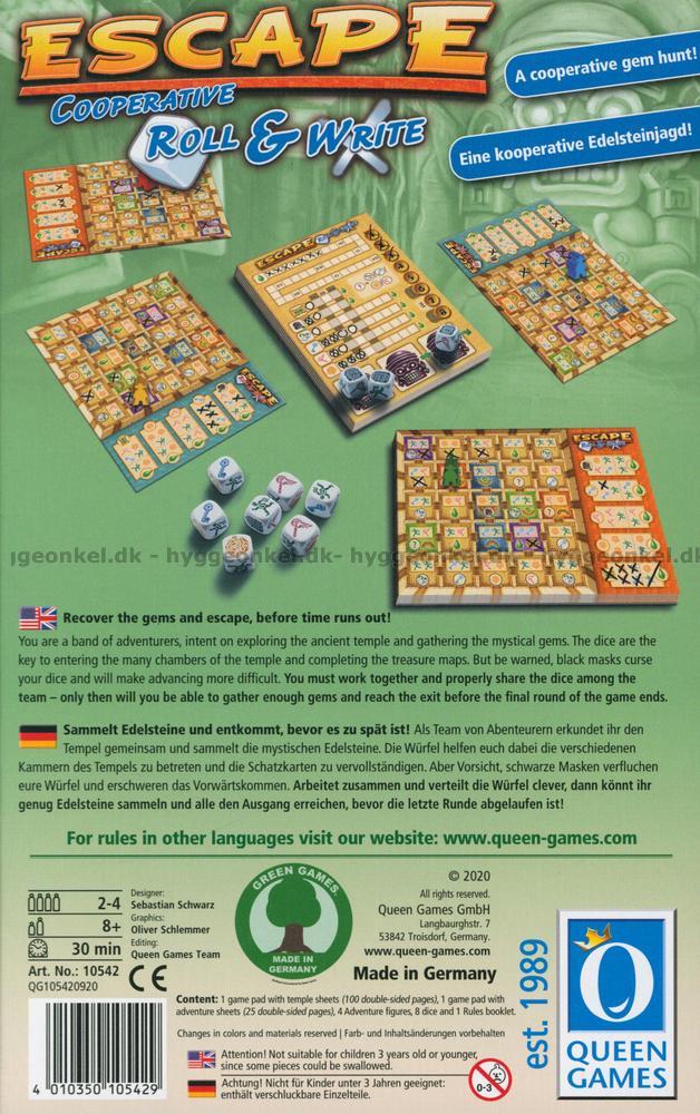 Här är spelet Escape i en fristånde roll-and-write utgåva.