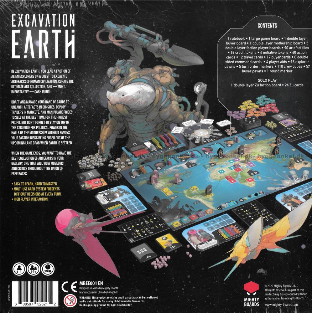 Genom att använda dina handlingar effektivt och anpassa dig till marknadsförändringar kan du få fler krediter, och spelet avslutas efter tre rundor, där spelaren med flest krediter blir den ultimata samlaren. "Excavation Earth" kombinerar spänning och strategi i en värld där varje beslut påverkar dina chanser till framgång som en galaktisk upptäcktsresande och konstsamlande.