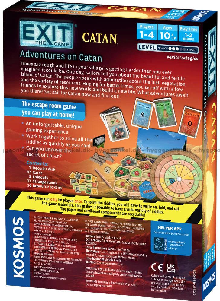 Exit: Adventures on Catan er et samarbeidsspill som forener den kjente og kjære verdenen fra Catan med den nervepirrende gåteløsningen fra Exit-serien.