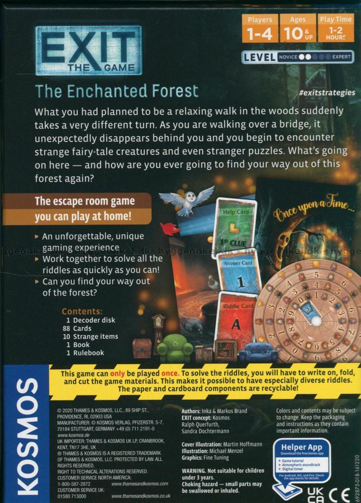 Vänligen uppmärksamma att EXIT: The Enchanted Forest endast kan spelas en gång. Under spelets gång ska ni skriva på korten, vika dem och riva itu dem.