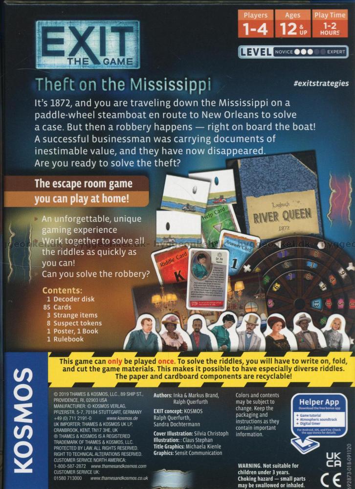 Notera att EXIT: Theft on the Mississippi bara kan spelas en gång. Det beror på att ni, under spelets gång, ska riva isär, vika och skriva på korten.
