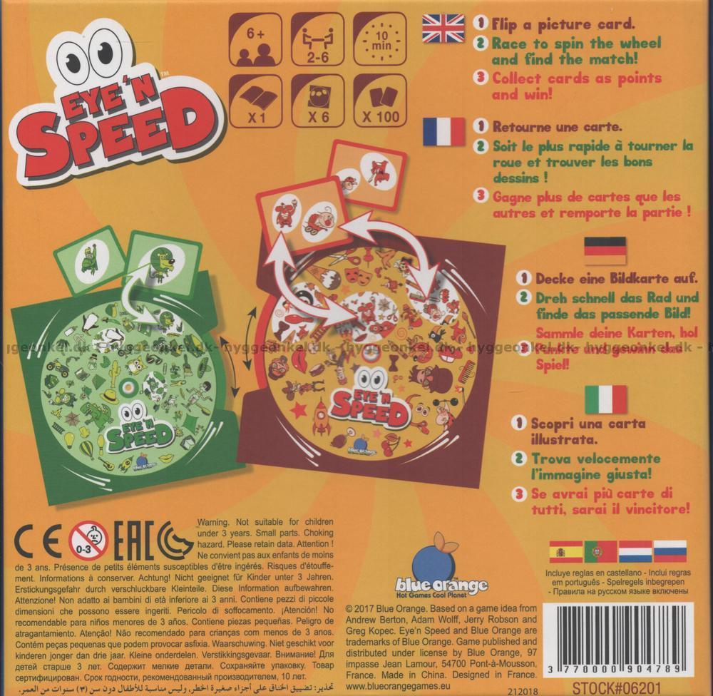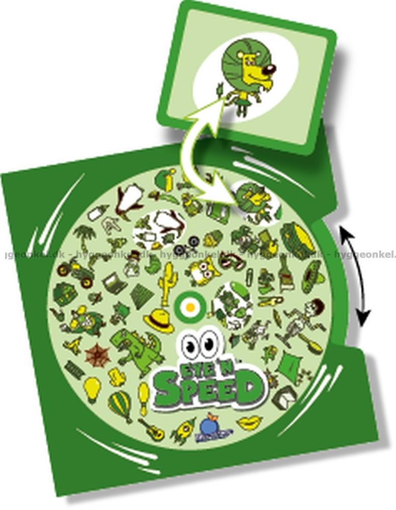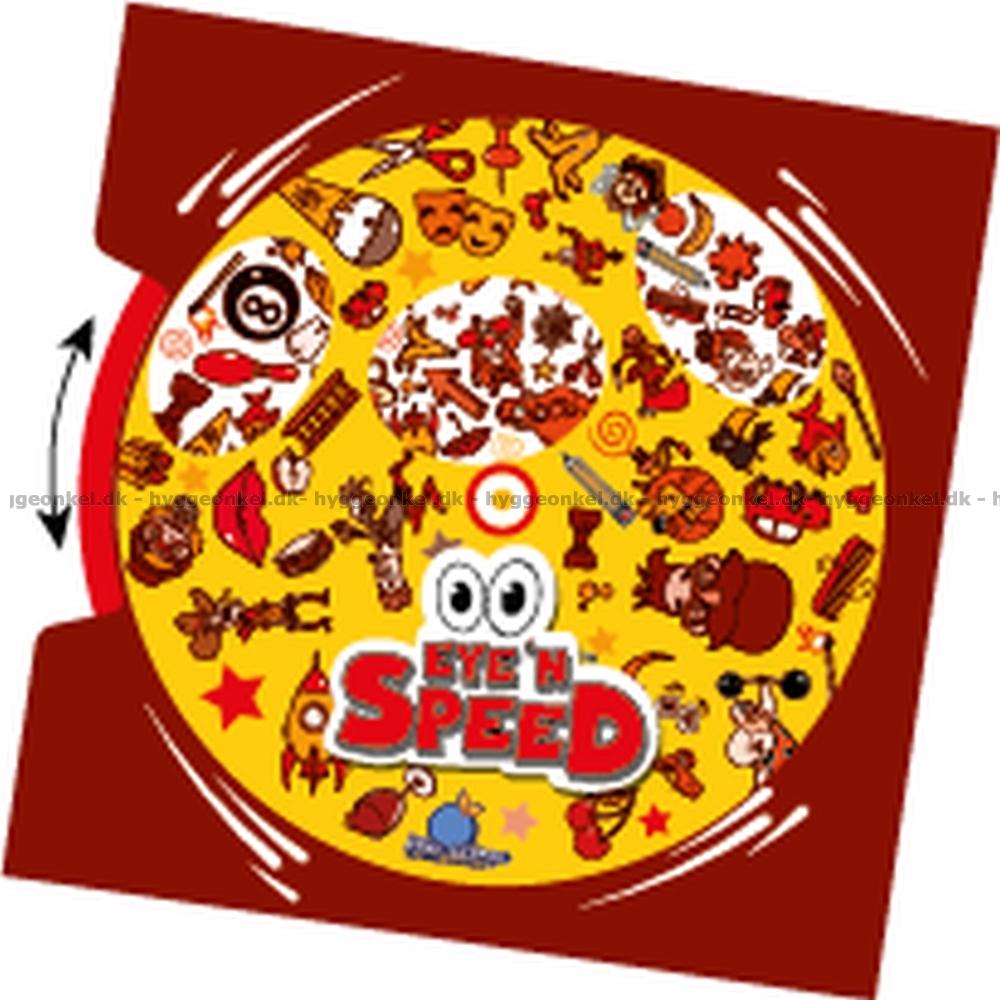 I Eye 'N Speed får varje spelare en dubbelsidig spinner. Spinnern har 3 fönster på varje sida och när spinnern roterar dyker det upp olika bilder i fönstren.