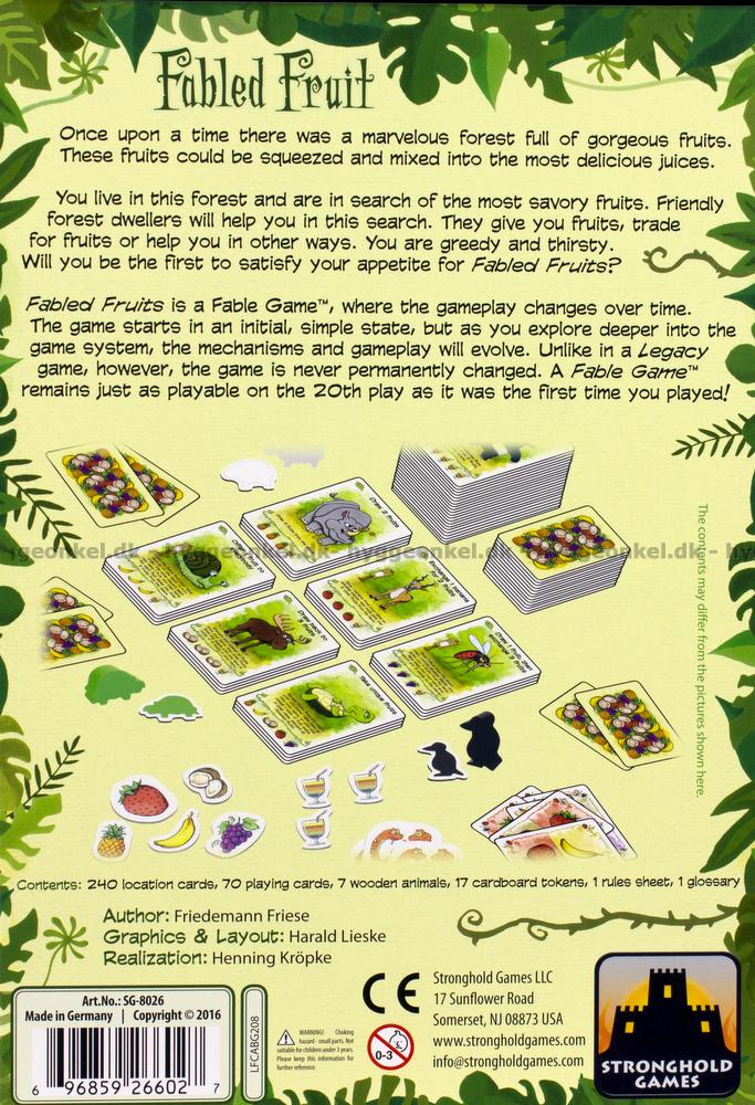 Fabled Fruit är ett Fable-spel - ett nytt och unikt koncept inom spelupplevelser, där spelets regler ändrar sig under loppet av en spelomgång. Spelet börjar på ett mycket enkelt sätt, men efterhand som ni utforskar spelets mekanismer blir reglerna mer invecklade.