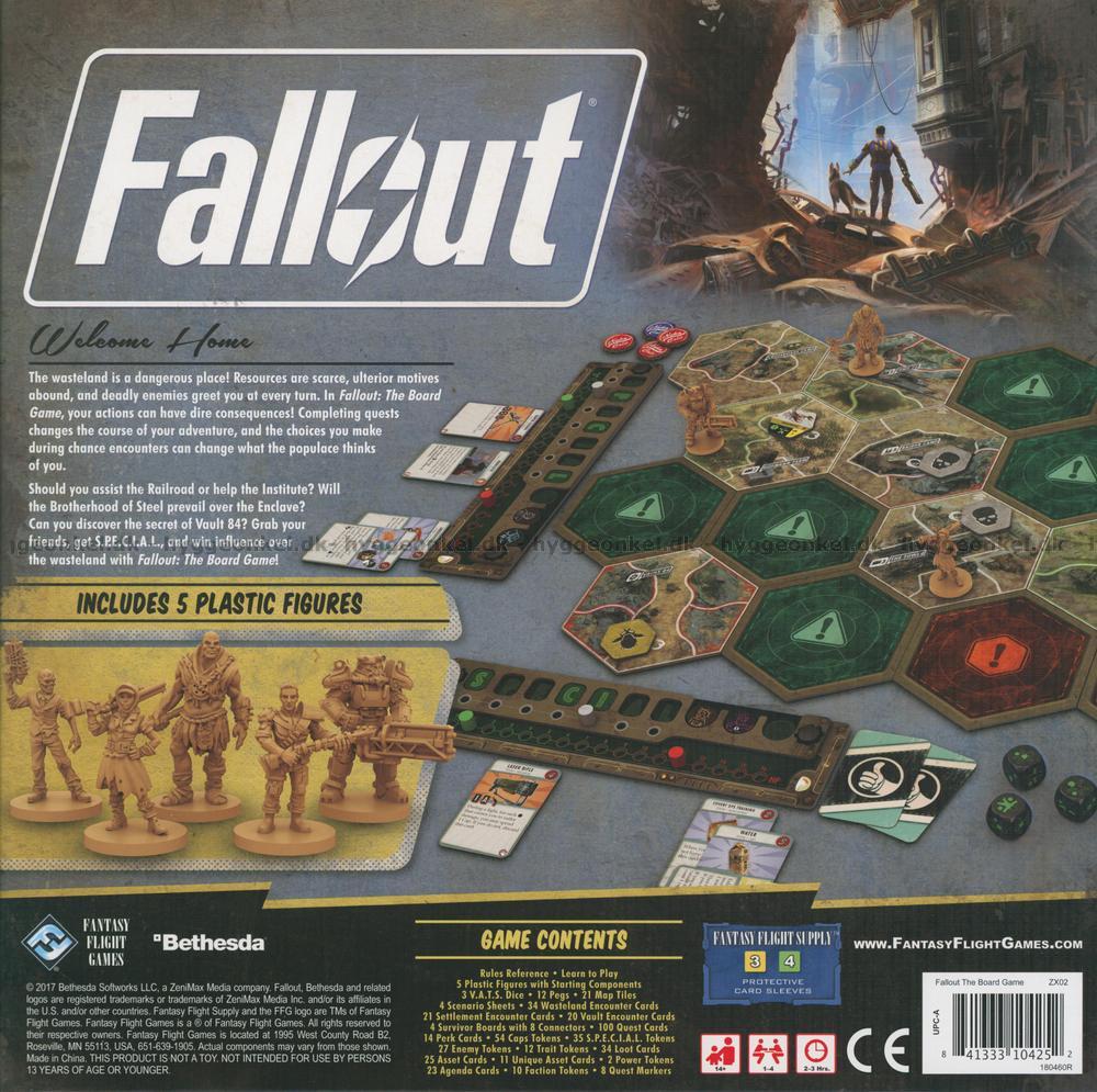 Fallout är ett äventyrsspel som är baserat på den populära serien datorspel från Bethesda Softworks. I detta brädspel startar 1-4 överlevande på gränsen till ett outforskat landskap med endast ett mål för ögonen: att överleva. Men, att överleva är endast steg ett.