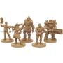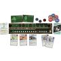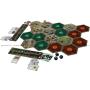 Kartbrickor, miniatyrfigurer, tärningar, marker och kort.