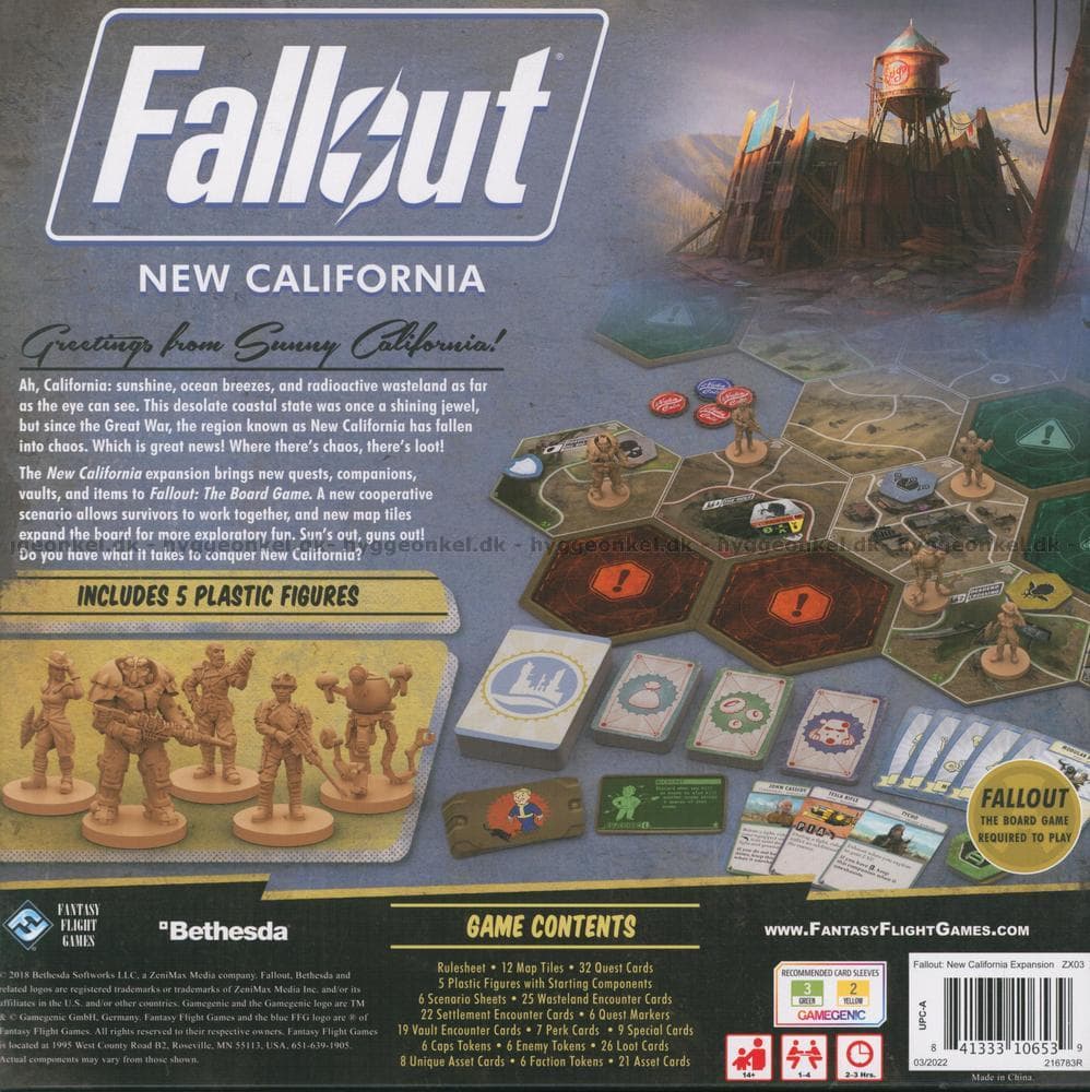 Fallout är ett äventyrsspel baserat på den populära serien datorspel från Bethesda Softworks. I brädspelet börjar 1-4 överlevande på gränsen av ett outforskat landskap. De har endast ett mål för ögonen, nämligen att överleva. Men, att överleva är endast början. Spelarna ska utforska den dolda kartan, kämpa mot farliga motståndare och bygga upp sina förmågor medan de löser uppgifter och manövrerar mellan de stridande fraktionerna i spelet. För att vinna spelet ska spelarna samla på sig inflytande och därmed säkra sig en plats i en värld som är helt förändrad. Välkommen till ödemarken.